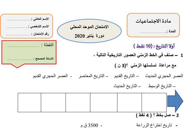 امتحانات محلية موحدة لمادة الاجتماعيات للمستوى السادس دورة يناير 2020