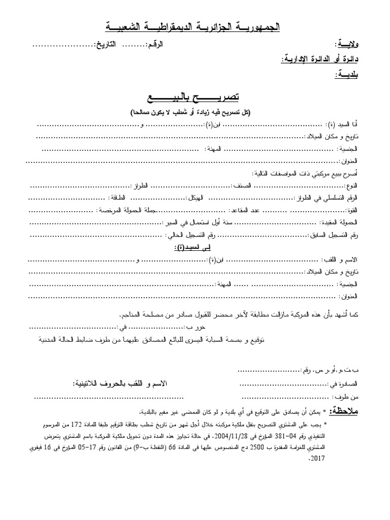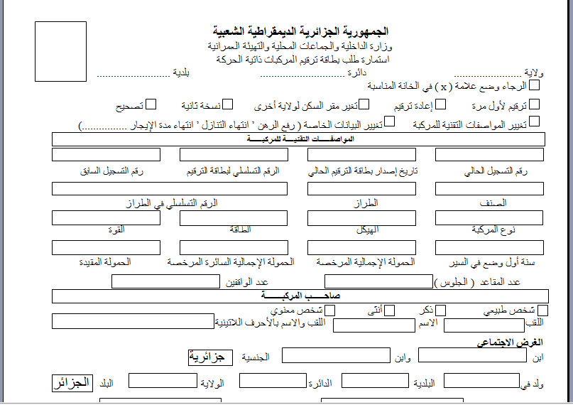 تحميل نموذج استمارة ترقيم السيارات الجزائر Doc محترف الانترنت