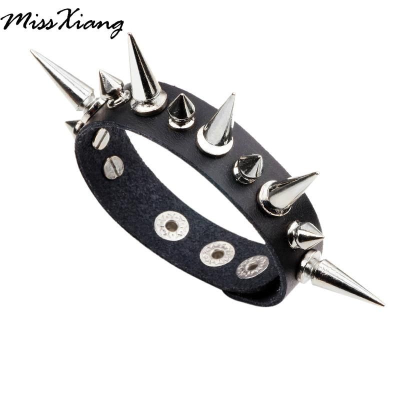 2017 الشرير الصخرة الشارع المفاجئة الأزياء فاسق المعادن برشام سوار جلدية واسعة سبايك سوار 2020 من Ladyamy 50 43ر س موبايل Dhgate