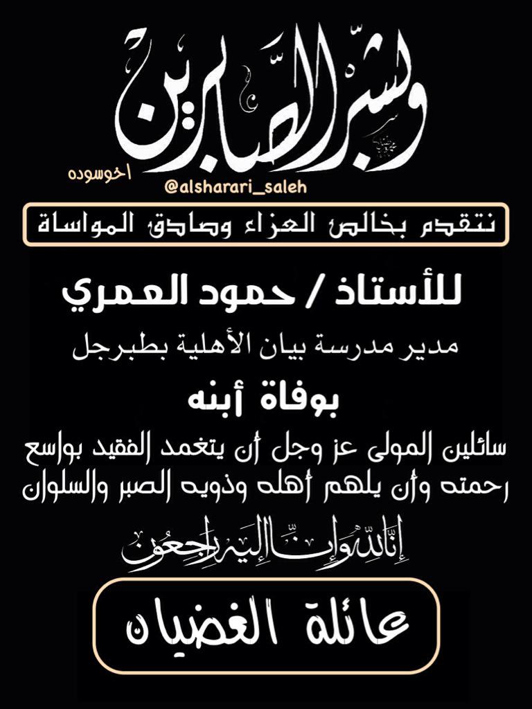 اخوسوده صالح أبورياض A Twitter تعزية للأستاذ حمود العمري عظم الله أجركم وأحسن الله عزاكم ورحم الله فقيدكم والهمكم الصبر والسلوان اخوسوده الغضيان Http T Co Kgtmo6flkq