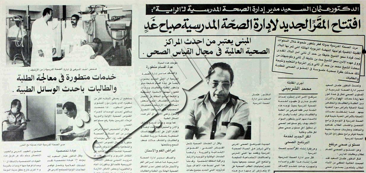الراية زمان اول V Twitter تحقيق للـ الراية في الثمانينات عن افتتاح المقر الجديد لإدارة الصحة المدرسية قطر زمان 1986 05 03