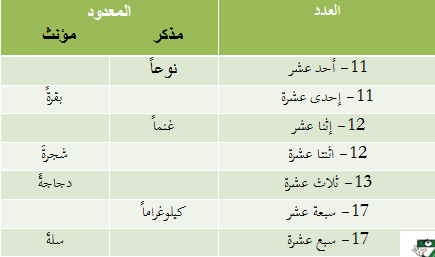 العدد والمعدود 11 19