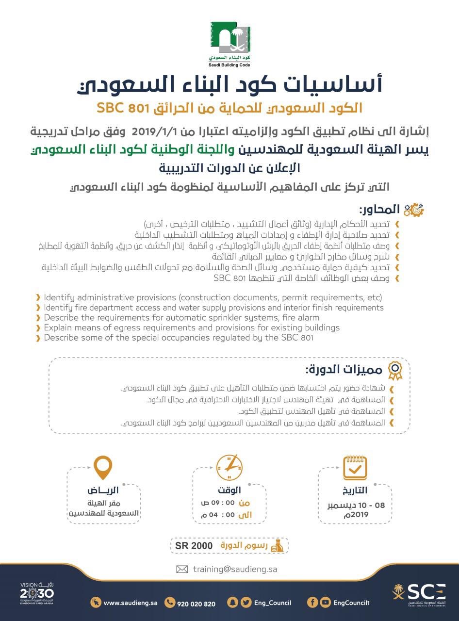 الهيئة السعودية للمهندسين Pa Twitter لتحديد صلاحية إدارة الإطفاء وامدادات المياه بادر بحضور دورة الكود السعودي للحماية من الحرائق Sbc 801 المقدمة من هيئة المهندسين بالتعاون مع اللجنة الوطنية لكود البناء السعودي للتسجيل
