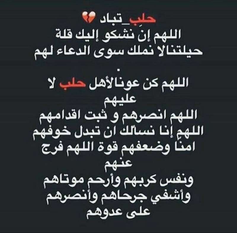 دعواتك لنا يا You يا حلب لك الله وكفى وإن تولى وتخلى عنا العالم وصدق ربي حين قال و إ ن ت و ل وا ف اعل موا أ ن الل ه م ولاك م ن عم الم ولى
