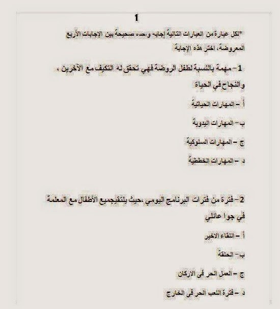 الاسئلة المتوقعه فى مسابقة التربيه والتعليم 2014 لتخصص رياض الاطفال واخصائى اجتماعى ومكتبات