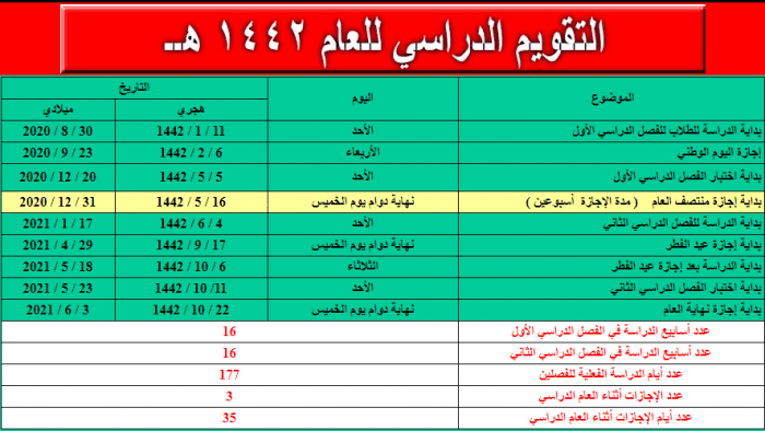 توزيع الاسابيع الدراسية 1442 في السعودية موسوعة