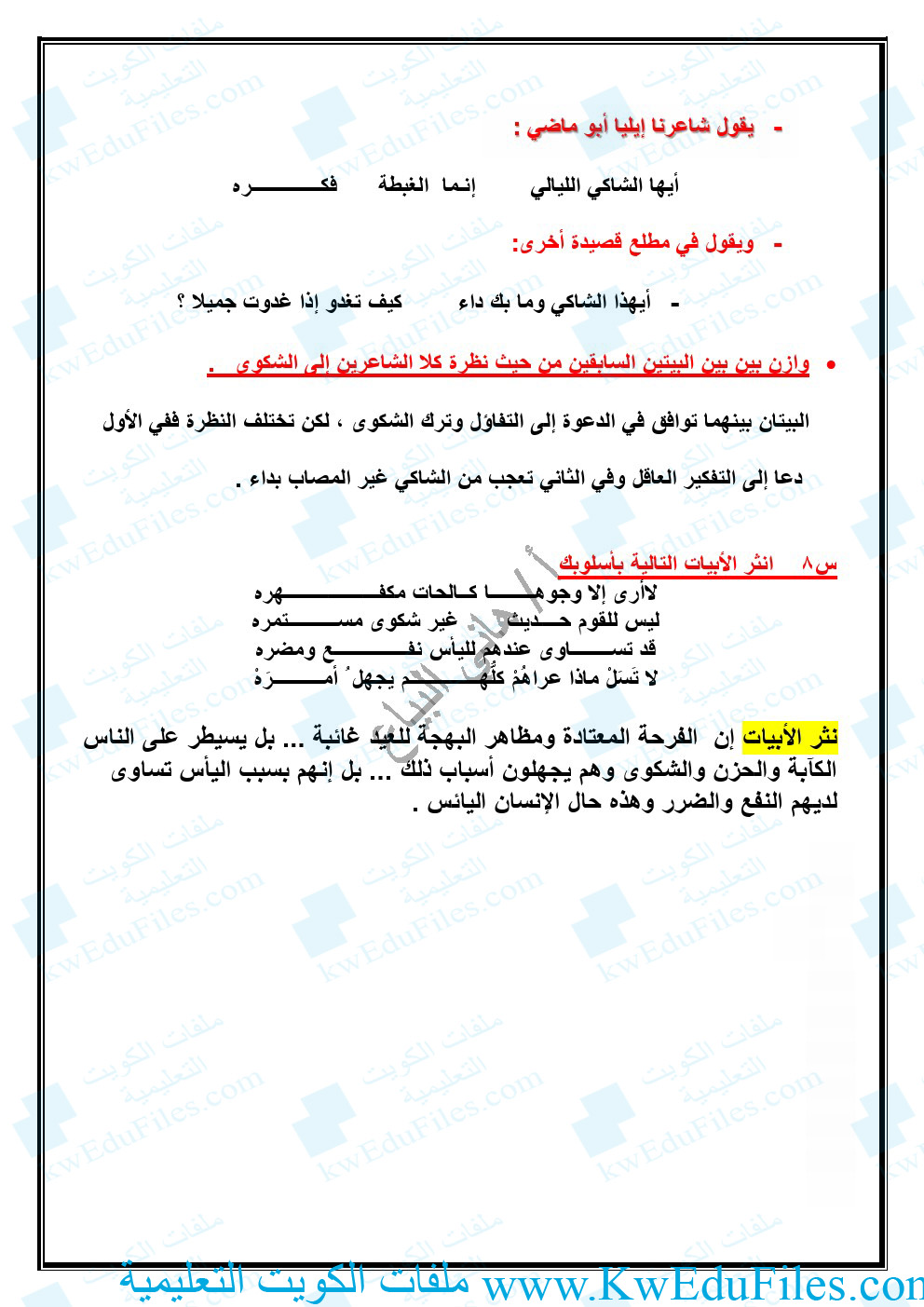 الغبطة قكرة الصف الثاني عشر لغة عربية الفصل الثاني ملفات الكويت التعليمية