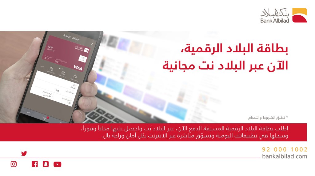 بنك البلاد Bank Albilad On Twitter بطاقة البلاد الرقمية الآن عبر البلاد نت مجانية Https T Co R1unqwu2gs بنك البلاد
